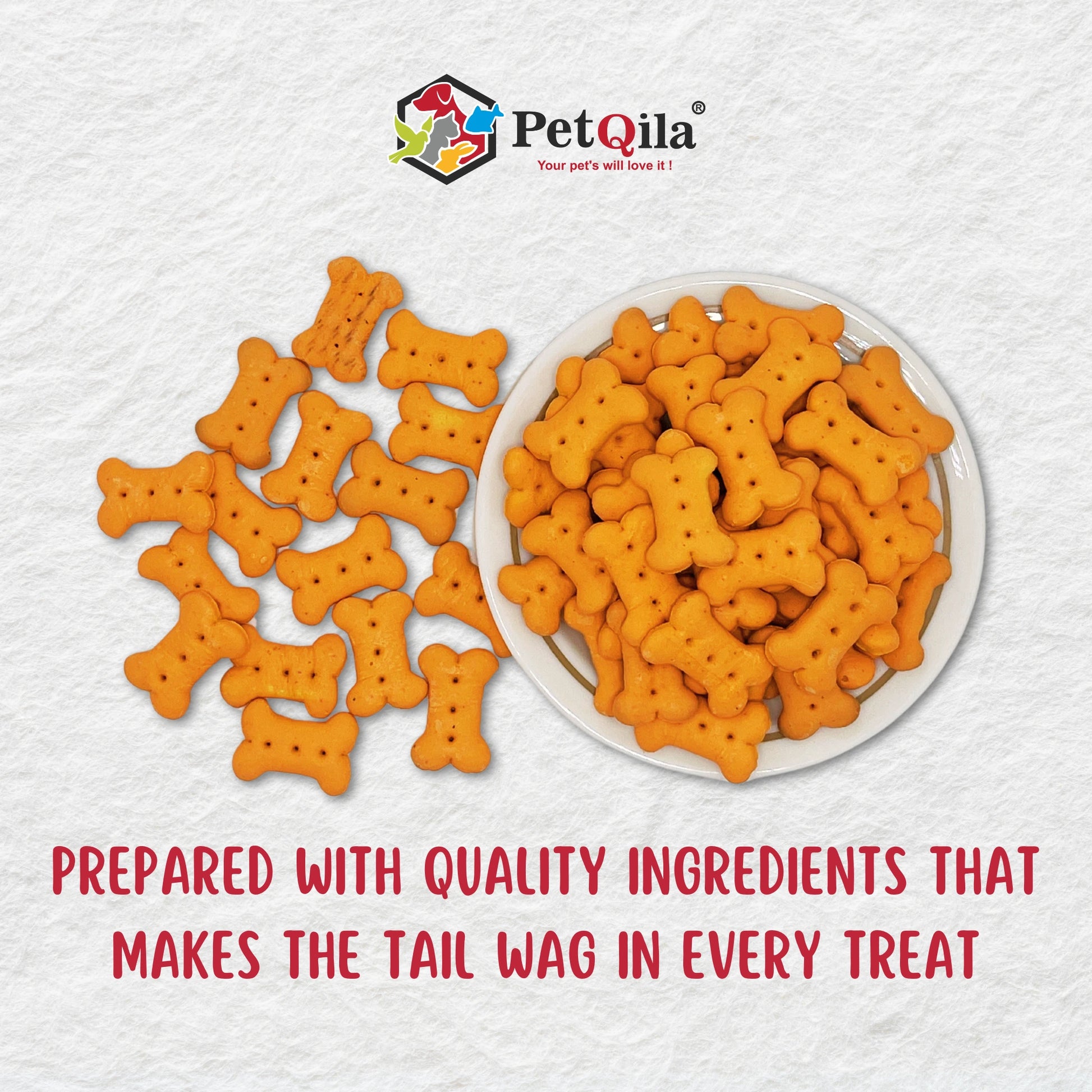 The texture of Petqila Crunchy Canine Dog Biscuits offers more than just a fun chewing experience for your dog. It also aids in preventing plaque and tartar buildup.